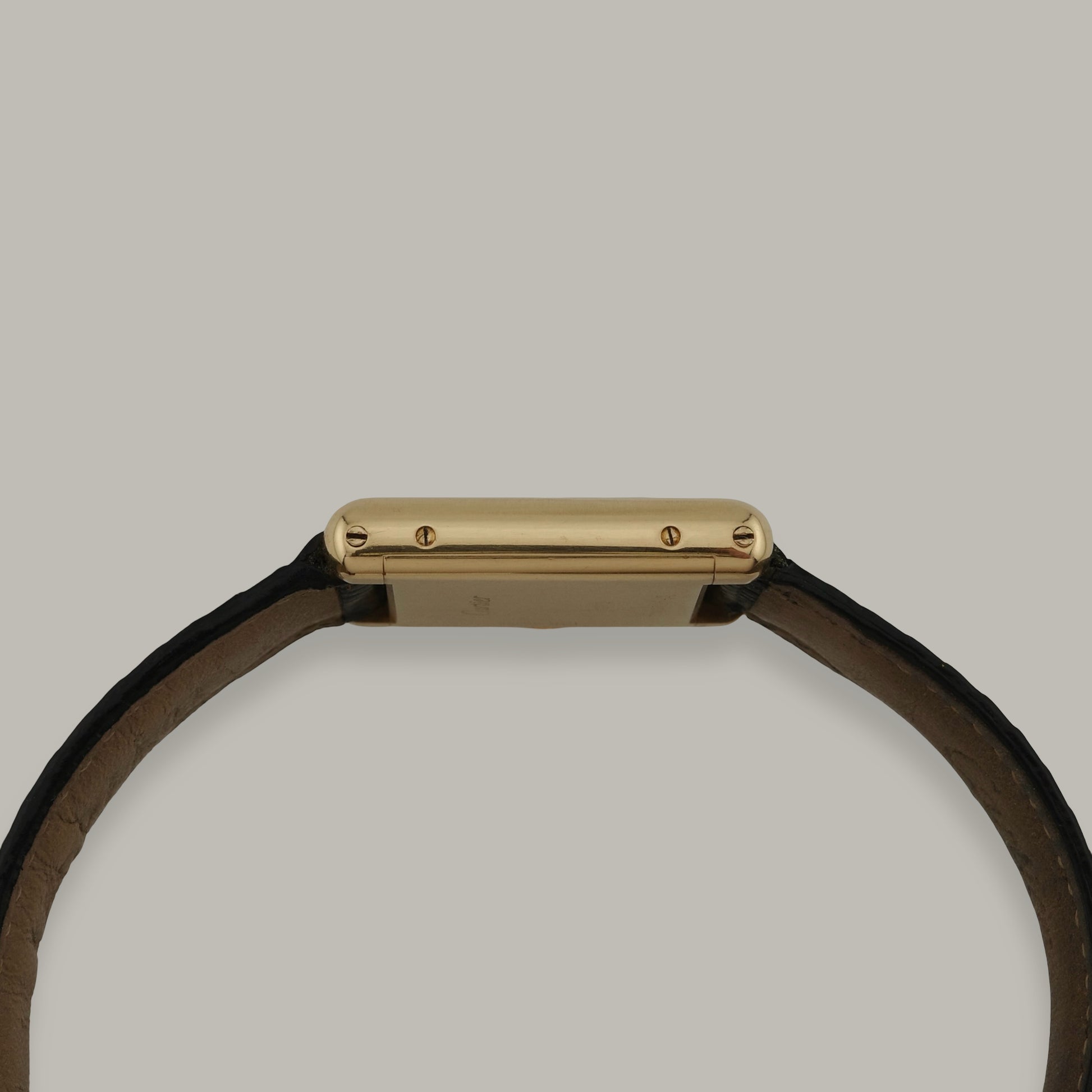 The Tank Louis Cartier, named after its creator, remains the purest expression of the original vision, maintaining the timeless proportions and classical aesthetic that defined the earliest models. This particular model, the ref. 78087 (the sister of the larger 78086), dates to the 1970s/1980s, a period that saw a creative resurgence for Cartier with the then-new Louis Cartier watch collection: a series of 12 iconic models, all presented in large and small versions (minus the baignoire). Crafted in yellow gold and powered by a manual-wind caliber 78-1 movement, this watch has a "spider" dial and Swiss signature at 6 o'clock.
