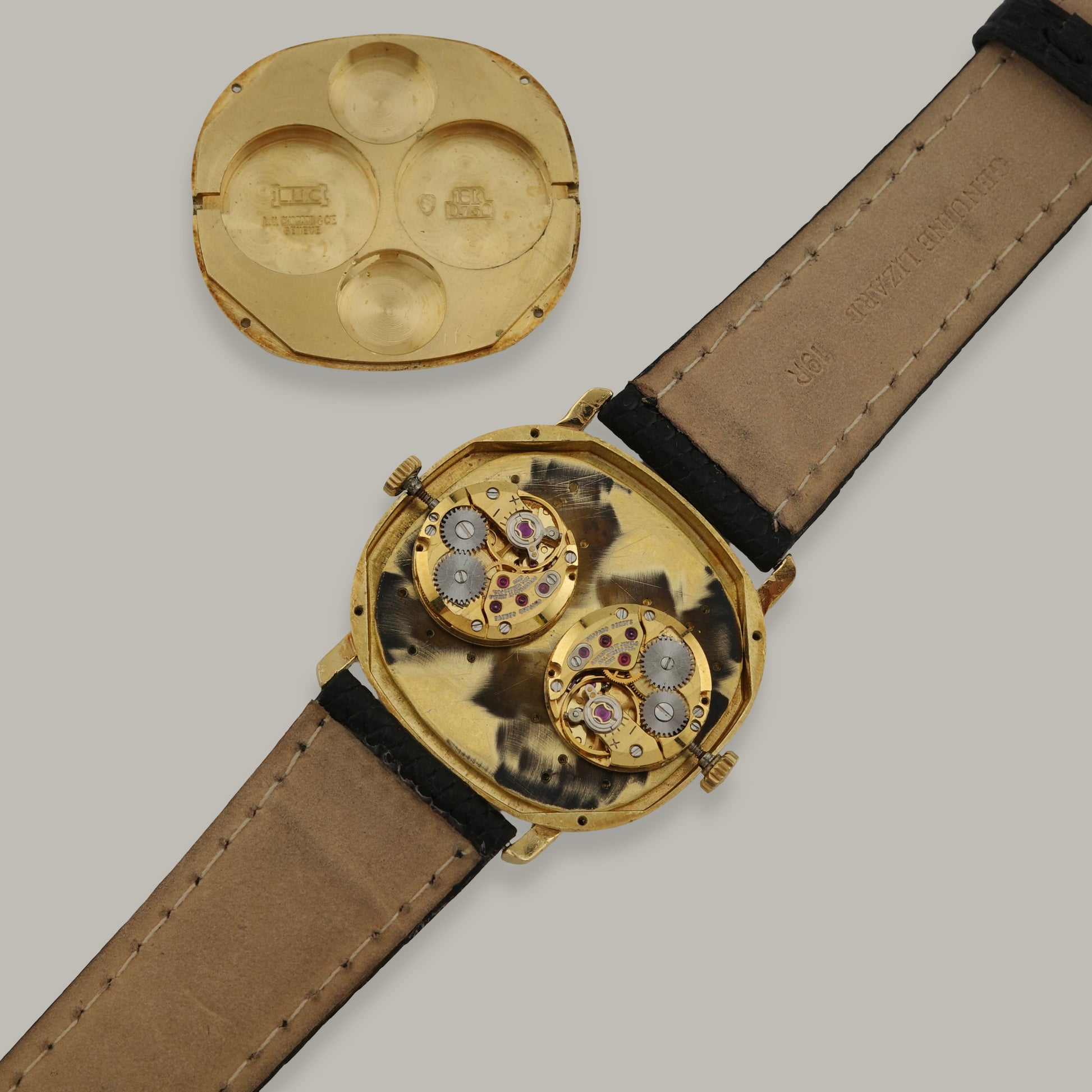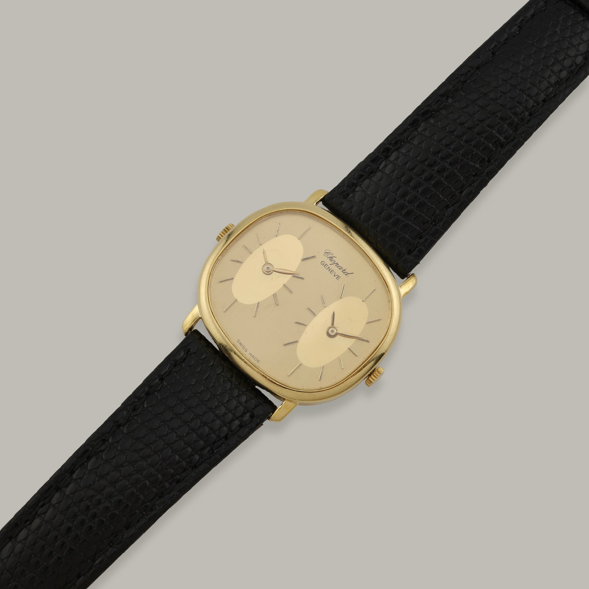 Even more compelling is what’s happening inside. Each time zone is powered by its own Chopard manual winding movement, completely independent from the other, and set via original L.U.C. signed crowns. Undeniably cool, the 2104-1 is the kind of vintage piece that stops conversations before you even explain what it does.