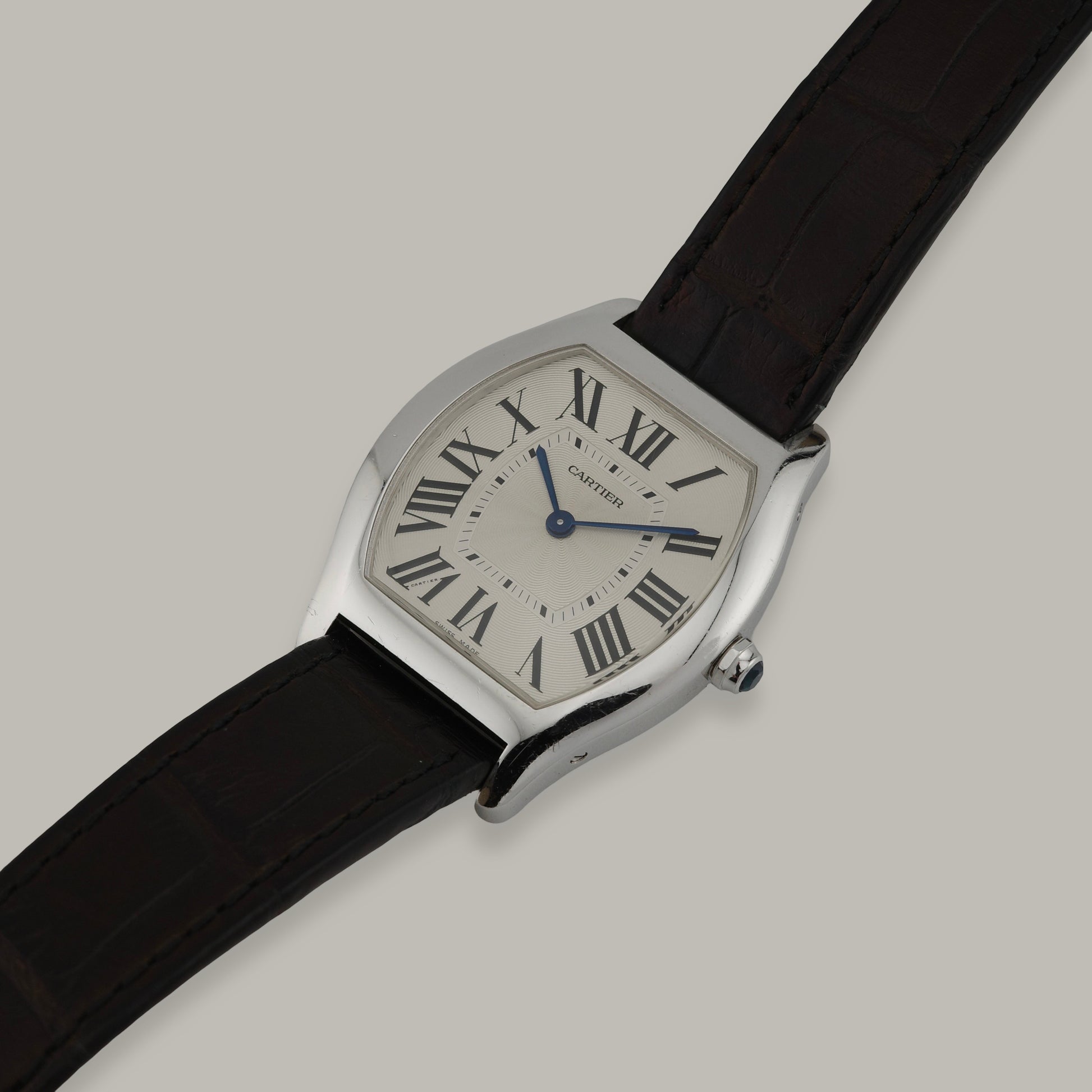 It comes fitted with a black Cartier leather strap, paired with an 18K white gold Cartier pin buckle. It's a watch that's more difficult to find than it seems, as full white gold Tortues in Medium size rarely surface, and when they do, they tend to disappear quietly.