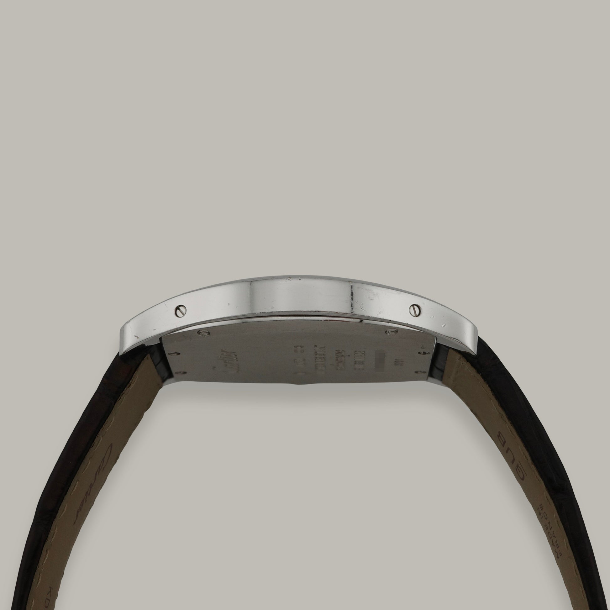 This example features the traditional silver Guilloché dial with bold Roman numerals, blued steel hands, and Cartier’s signature chemin de fer minute track. The proportions of the Medium model give the dial room to breathe, while still remaining a perfect size for anybody to enjoy.