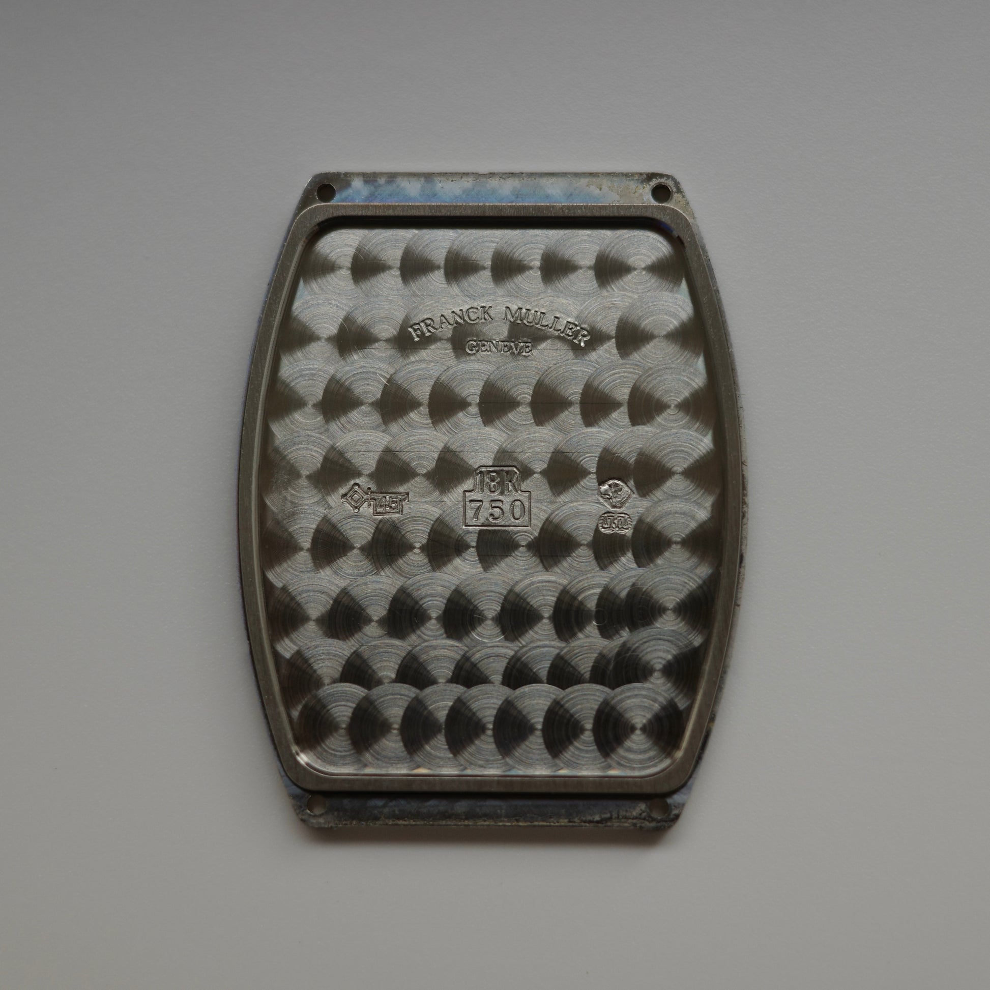 Good vintage condition. Moderate scratches and indentations throughout case. Light scratches on crystal. Light discoloration at center of dial. Movement is clean and free of any damage. Watch is on a slightly worn Franck Muller black crocodile strap accompanied by it's original 18K white gold pin buckle. Watch was recently serviced and is running great.