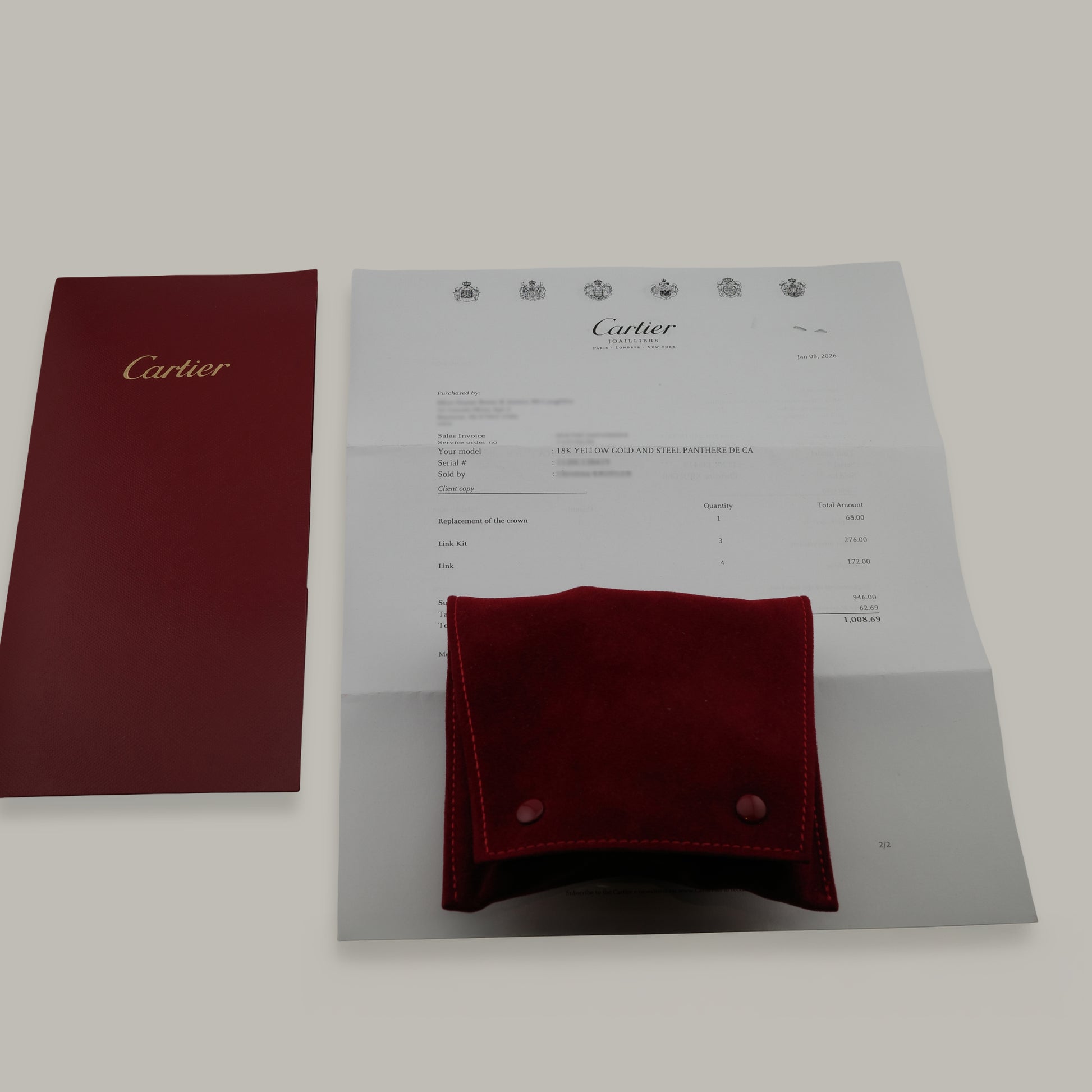 Watch is accompanied by it's 2026 Cartier service paperwork and service pouch.